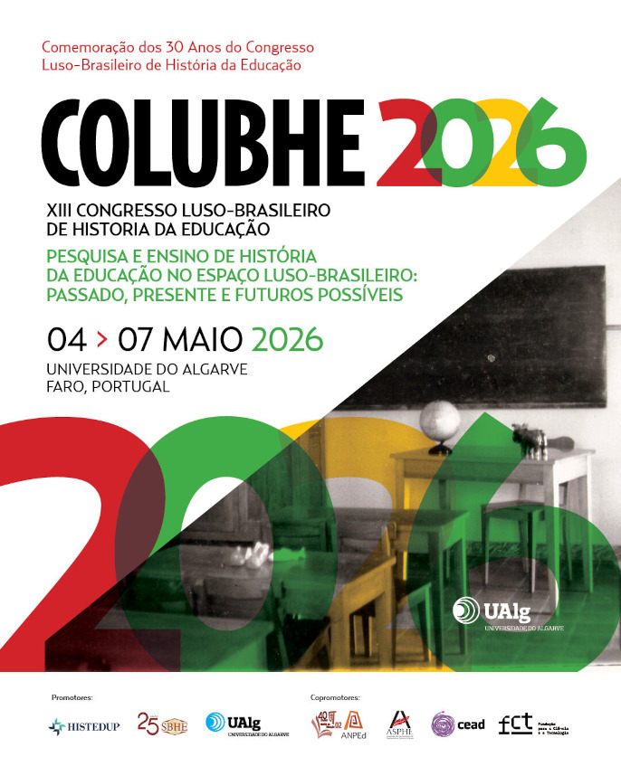 4 a 7 de maio de 2026 | XIII Congresso Luso-Brasileiro de História da Educação | HISTEDUP, SBHE, UALG, ANPED, ASPHE, CEAD, FCT | Universidade do Algarve, Campus de Gambelas | Poster |